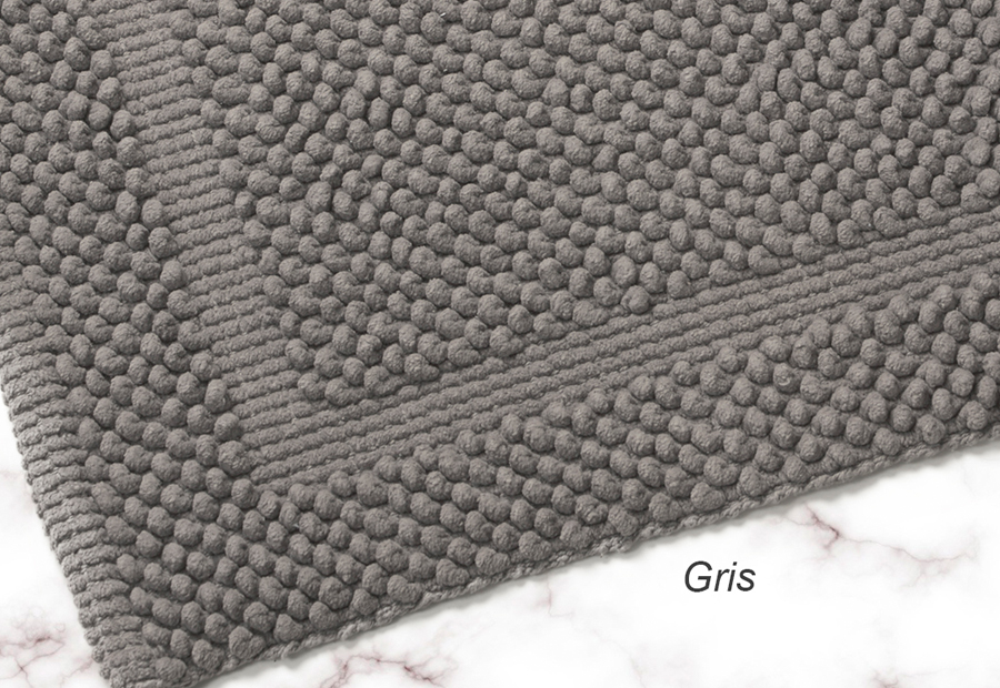 Tamaño: 40x60 cm. Cuatro colores disponibles: blanco, marrón, beige y gris. Composición: chenilla 100% poliéster. Con tratamiento antideslizante en el reverso.