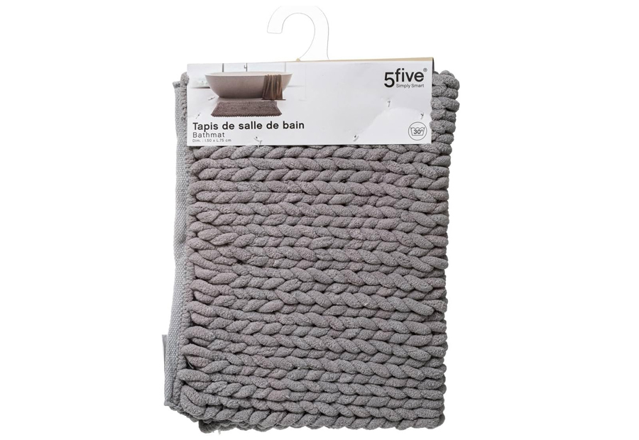 Alfombra gruesa para el baño de la marca 5FIVE. Tamaño: 50x75 cm. Muy confortable y suave. Material: Algodón y poliéster. Gramaje: Alta calidad en 2200 g/m2. Peso: 0,95 kg. Certificado OEKO-TEX. Packaging a granel con percha y cartón impreso.