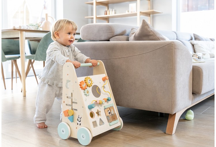 Además de animarle a caminar, desarrollando el equilibrio y sus habilidades motoras, incluye 7 divertidas actividades para pasarlo en grande y desarrollar la psicomotricidad fina.