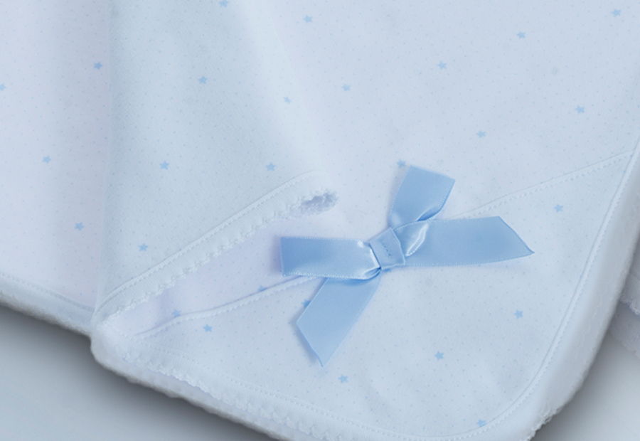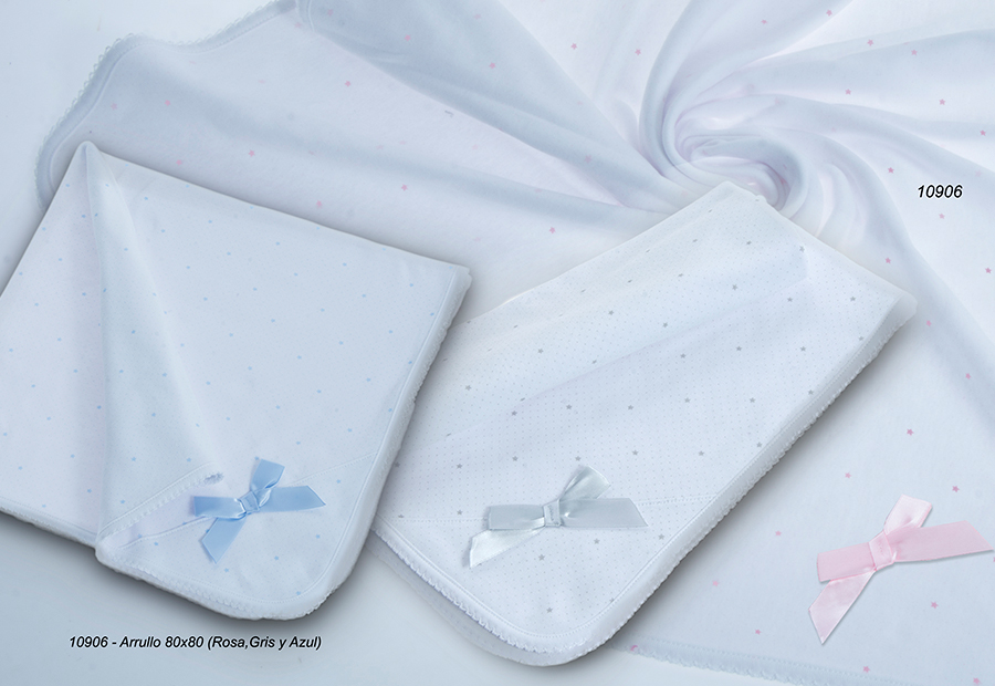 Arrullo infantil en tamaño de 80x80 cm de la marca Gamberritos. Packaging en caja. Composición: 100% Algodón. Detalle lazo bordado.