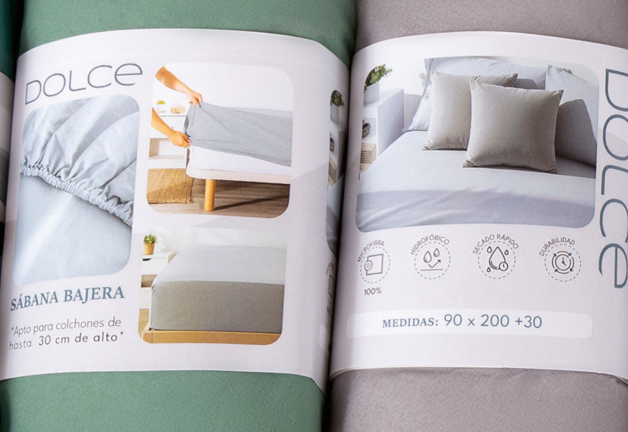 Sábana bajera ajustable económica de la marca Dolce. Tejido 100% poliéster de microfibra. Packaging: Enrollada en rollo y insert de cartón impreso con información. Largo bajera: 200 cm. Apta para colchones de hasta 30 cm de alto. Secado rápido. Durabilidad. Hidrofóbico. Se vende en colores surtidos.