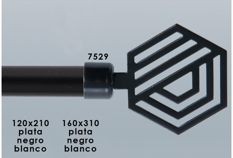 Medida 2 extensible desde 160 a 310 cm extensible. Diámetro de la barra: 19 mm. Incluye: 16 Anillas metalicas, tres soportes extensibles y accesorios.