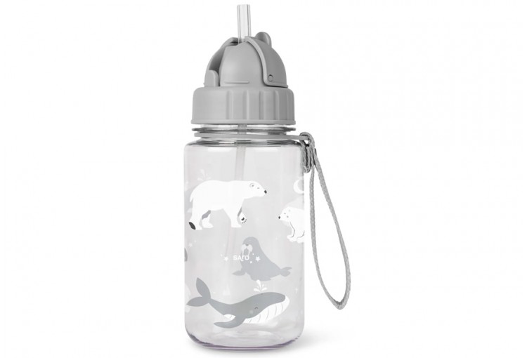 Botella con Pajita 400ml SARO Oso Polar Polaris gris 74007