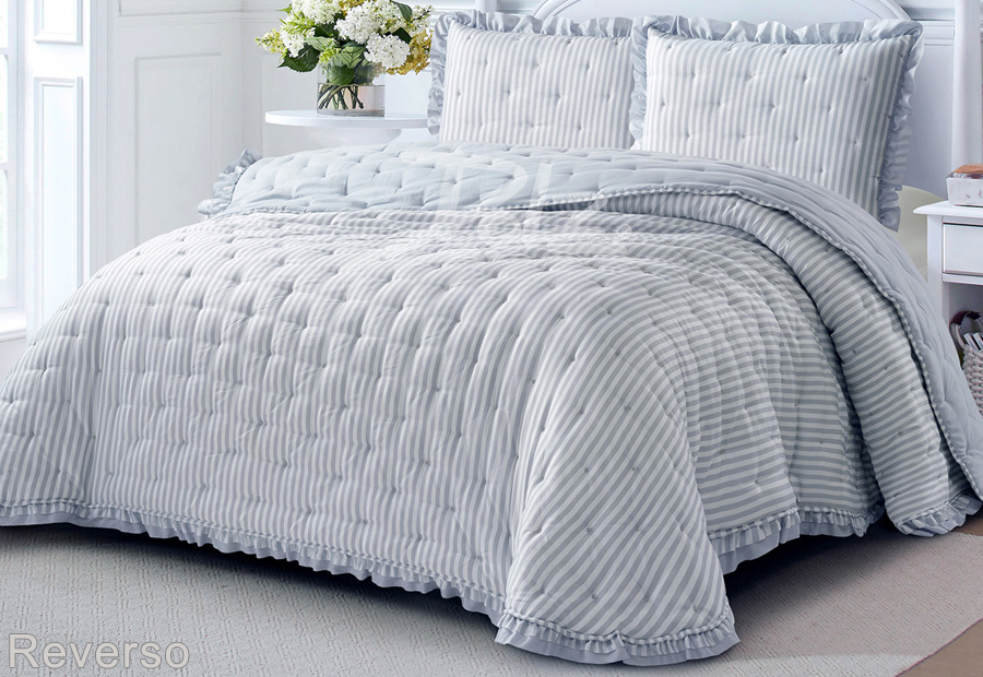 Bouti Edredón Confort Volantes Reversible DOLZ Wendy gris
