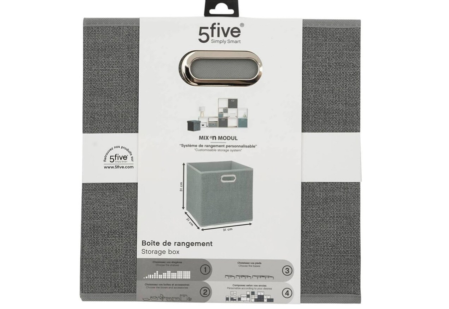 Caja plegable de almacenamiento de la marca 5Five. Tamaño: 31x31x31 cm. Material: PP y cartón. Peso: 0,581 kg. Packaging colgable.