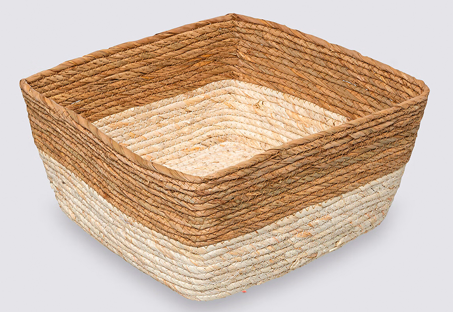Cesta de almacenamiento en forma cúbica de la marca 5 FIVE. Tamaño:  L. 31 x l. 31 x H. 15 cm. Peso: 0,440 kg. Material: Paja - Heno.