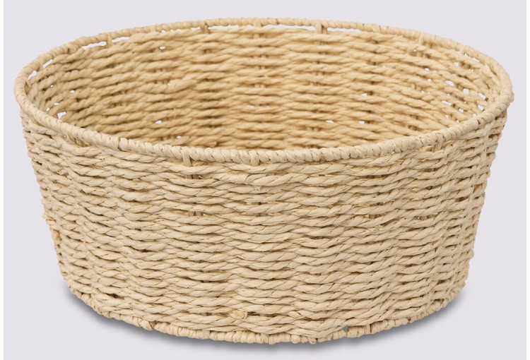 Cesta redonda para organización y almacenamiento de la marca 5FIVE. Tamaño: 28 x 11,5 cm. Diámetro 28 cm. Material: Hierro - Papel. Peso: 0,3 kilos. Packaging a granel con etiqueta.
