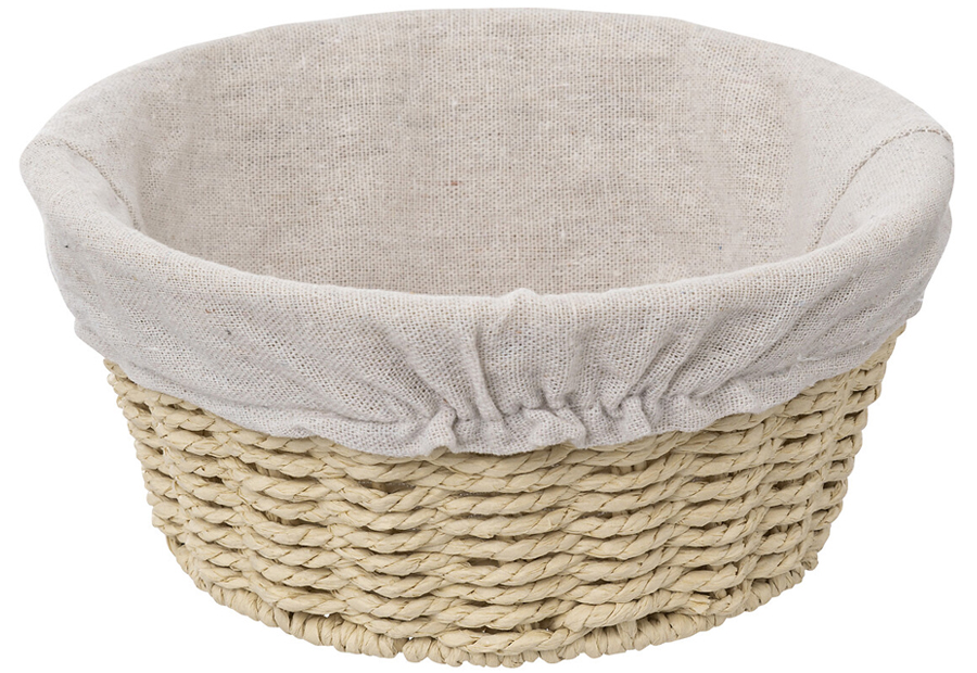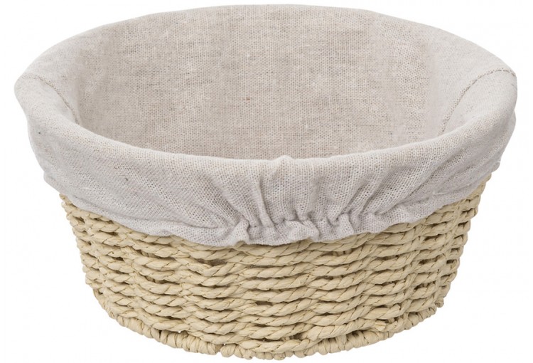 Cesta redonda tejida para pan, organización y almacenamiento de la marca 5FIVE. Tamaño: 21,5 x 10 cm. Peso: 0,190 kg. Packaging a granel con etiqueta.