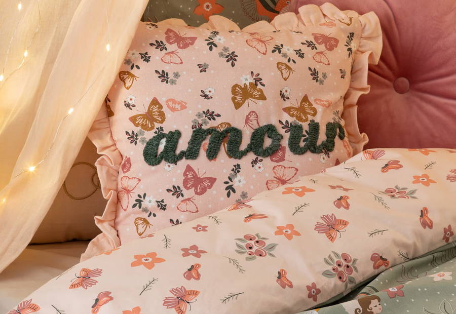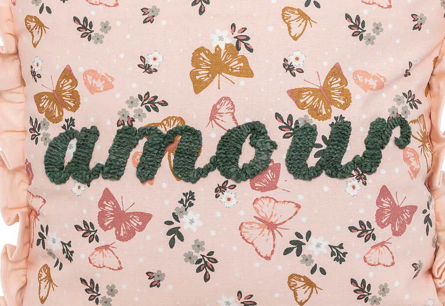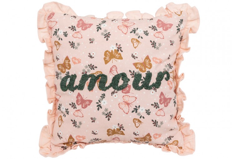 Este cojín cuadrado de algodón presenta un estampado bucólico y la palabra bordada Amour en relieve de la marca Atmosphera. Tamaño: L. 40 x P. 10 x A. 40 cm. Material: Algodón. Peso: 0,430 kg. Con relleno incluido.