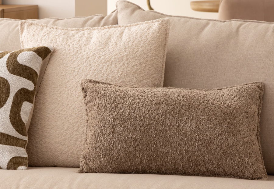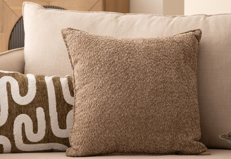 Cojín Saona, increíblemente suave gracias a su reverso de terciopelo y su parte frontal con bucles de la marca Atmosphera. Certificado Oeko-Tex. Funda extraíble con cremallera. Dos tamaños disponibles: 30x50 cm - 45x45 cm. Composición: 100% Poliéster. Con relleno de cojín incluído envasado al vacío.