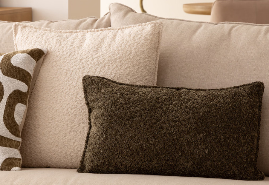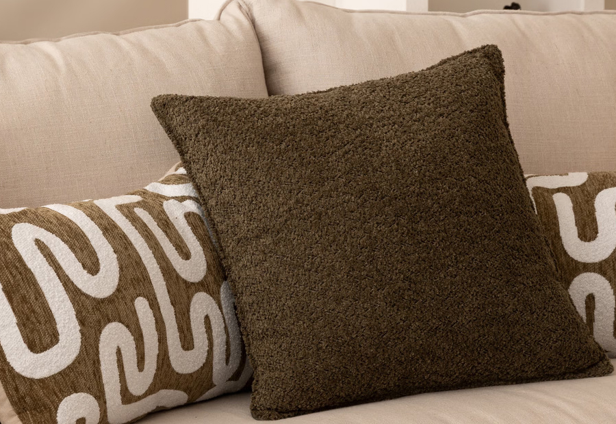 Cojín Saona, increíblemente suave gracias a su reverso de terciopelo y su parte frontal con bucles de la marca Atmosphera. Certificado Oeko-Tex. Funda extraíble con cremallera. Dos tamaños disponibles: 30x50 cm - 45x45 cm. Composición: 100% Poliéster. Con relleno de cojín incluído envasado al vacío.