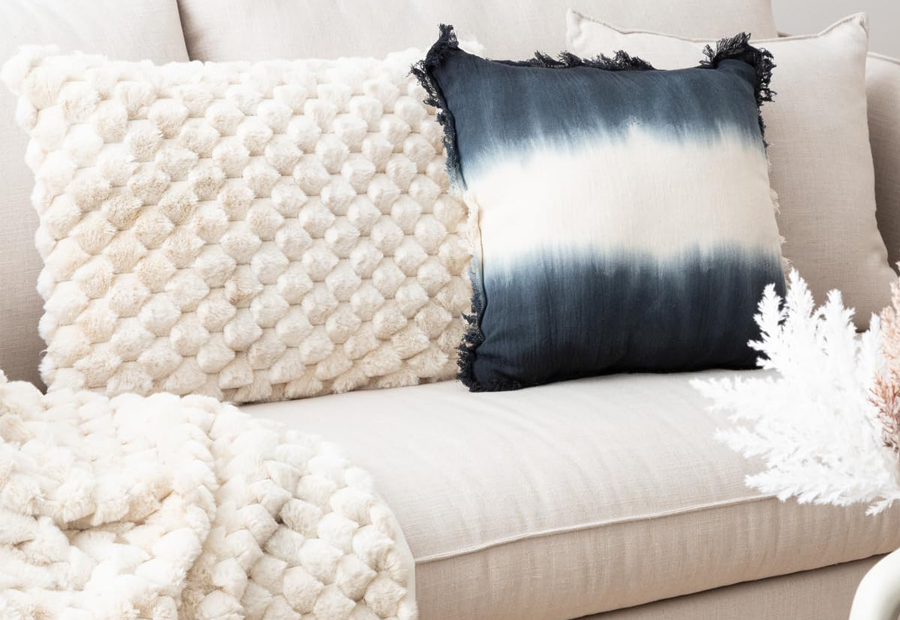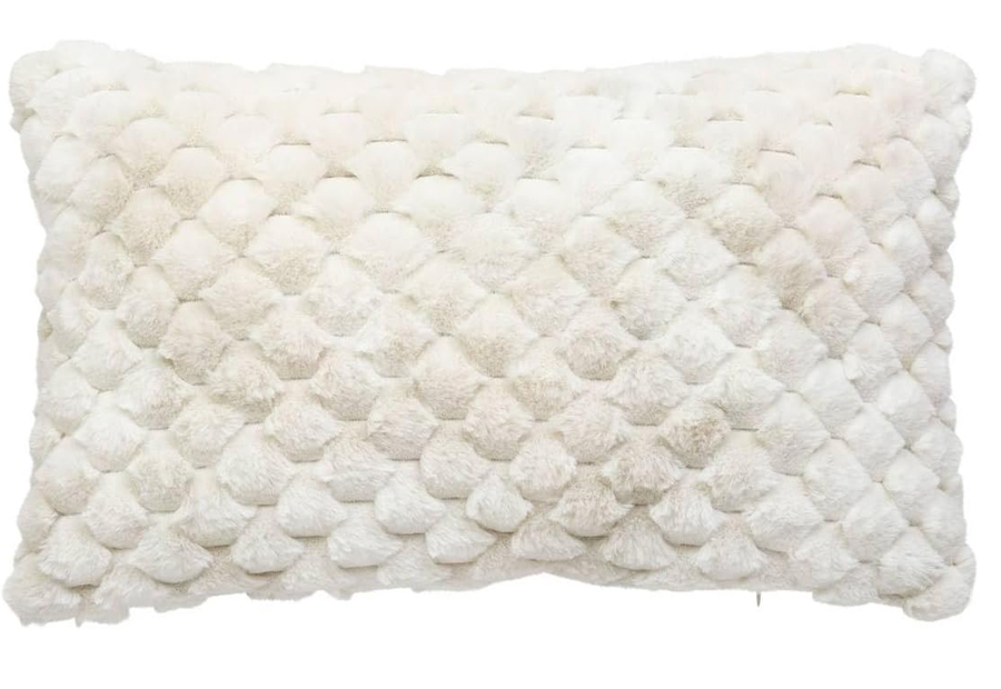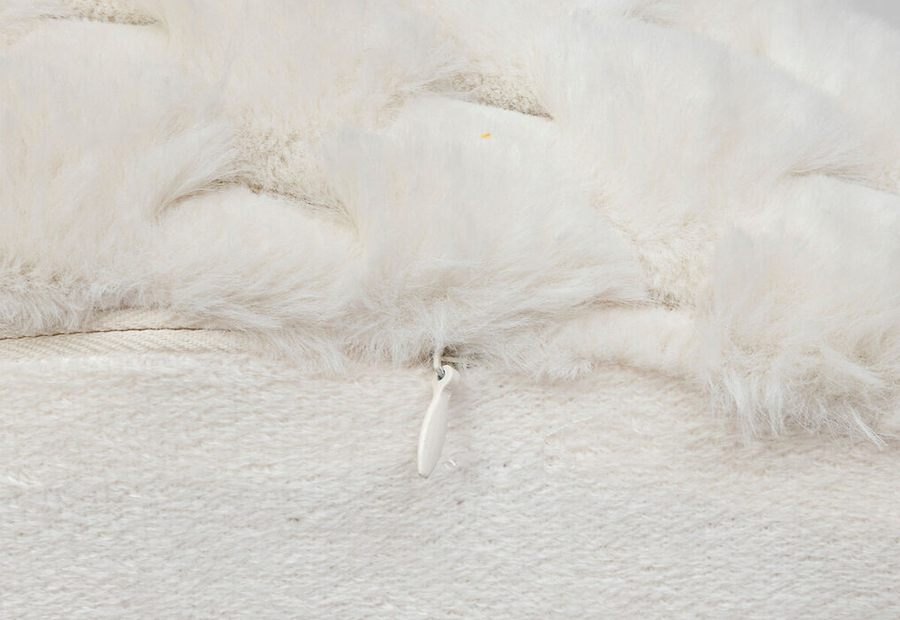 Cojín con relleno incluido de la marca Atmosphera. La cara principal con diseño de peil con textura y el reverso en liso a tono. Tamaño: 38x58 cm. Tejido 100% poliéster. Cierre en cremallera. Tacto muy suave y agradable.