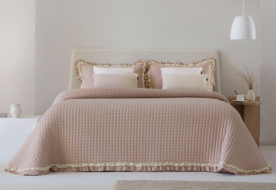 Colcha Bouti Entret. 150gr FUNDECO Volante-Puntilla Everly rosa