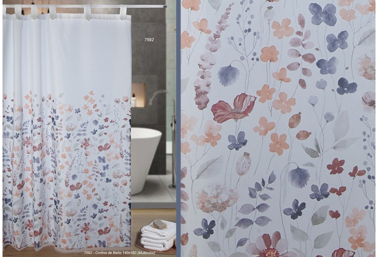 Cortina Baño Trabillas Botones 140x180 IDEAL Floreal multi 7592