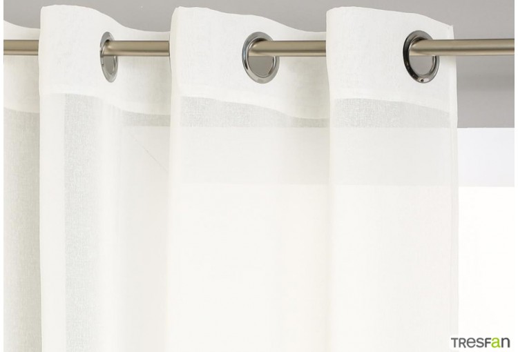 Cortina de visillo liso de la marca Atmosphera. Tamaño: 140x240 cm. Composición: 100% Poliéster. Confeccionada con anillas de acero inoxidable.