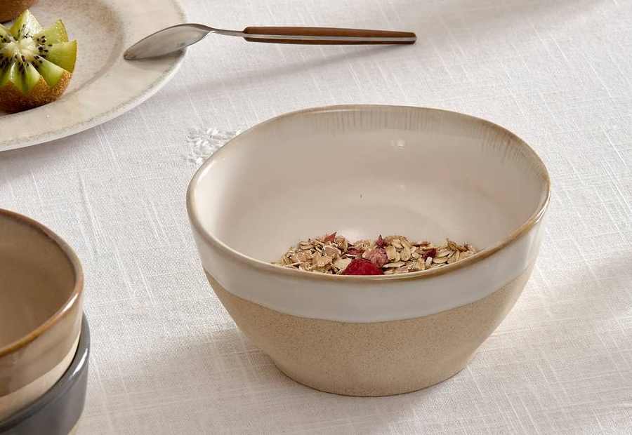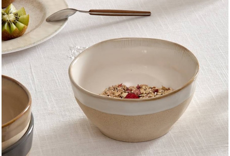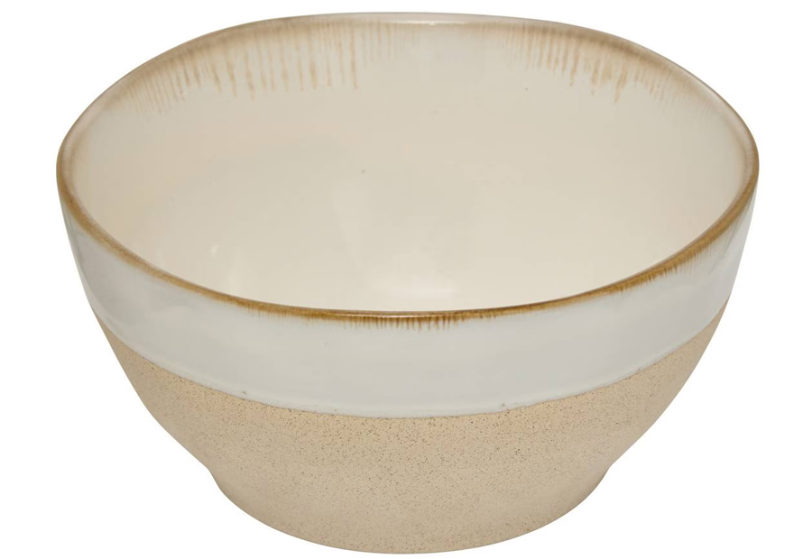 Cuenco Bol grande con aspecto natural y artesanal de la marca Atmosphera. Capacidad: 720 ml. Material: Loza de barro. Tamaño: 15,3 x 7,2 cm. Peso: 0,46 kg. Apta para lavavajillas y microondas. Packaging a granel con etiqueta impresa.