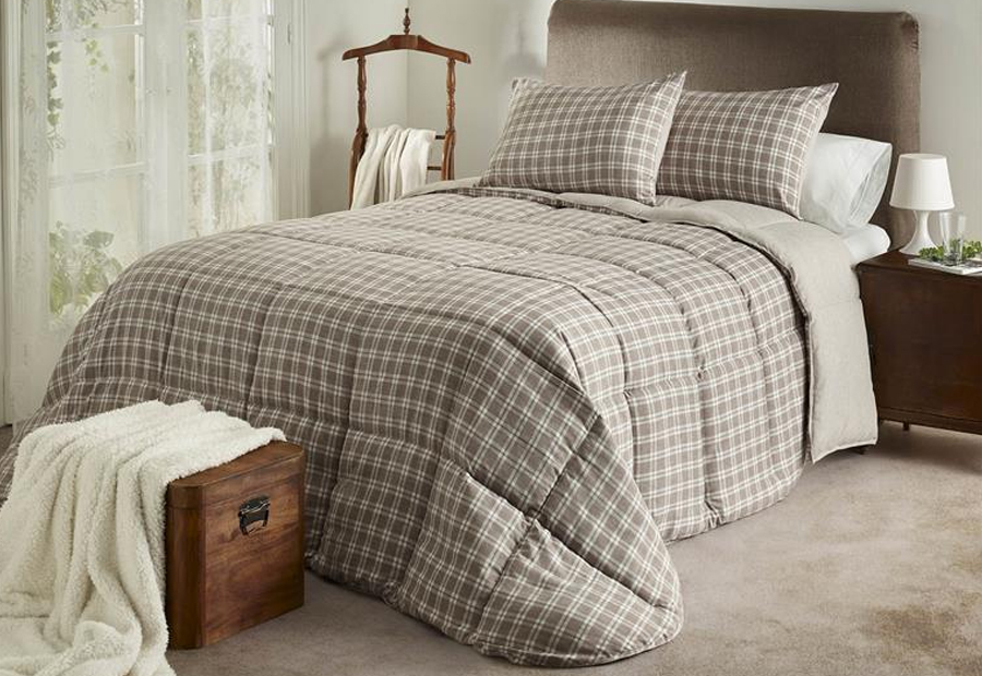 Edredón Comforter Hilo Tintado ATENAS Reversible Squares marrón