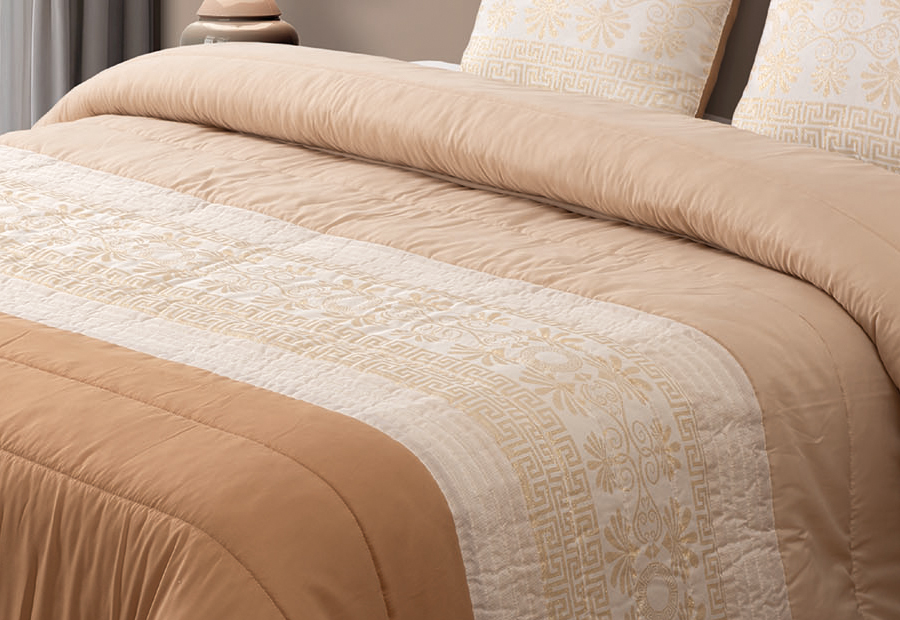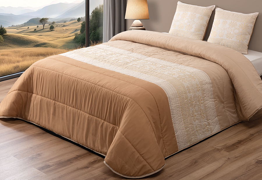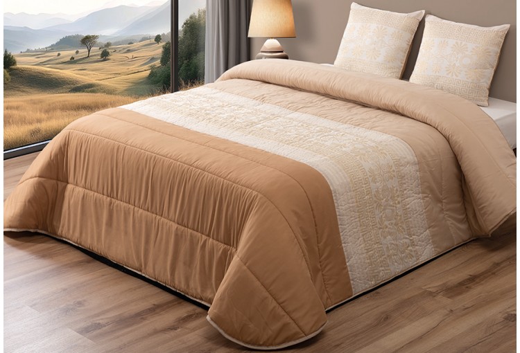Edredón comforter elegante con diseño jacquard llegado de Portugal. Relación calidad / precio sin competencia. Composición: 100% Poliéster. Tamaño disponible: cama 150 - 250x260 cm + 2 Cojines llenos de 55x42 cm. Packaging en bolsa de pvc con cremallera y asa de cordón.