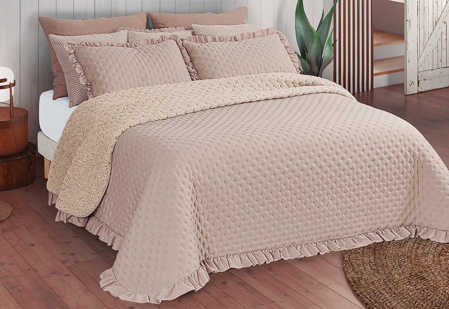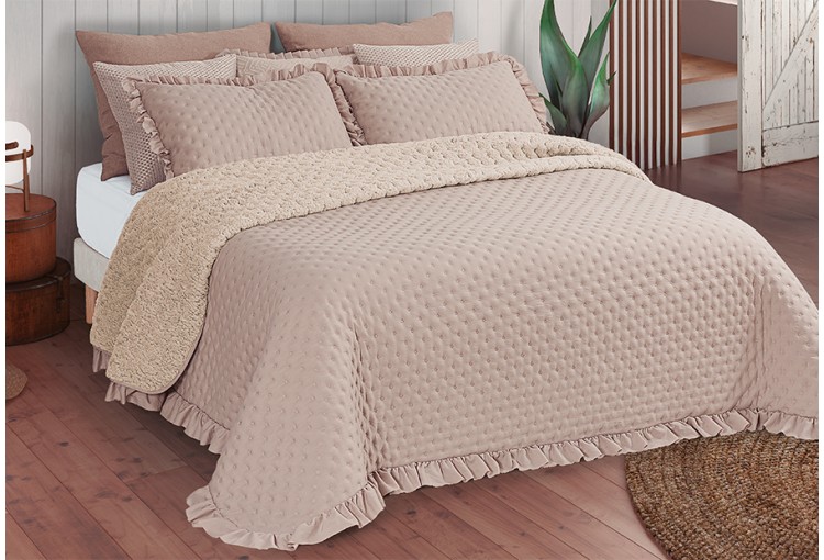 Edredón Comforter Volante Reverso Sherpa LLARBONA Maia taupe