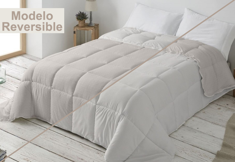 El diseño reversible de este Edredón, con rayitas verticales en el mismo tono, aporta un encanto geométrico y versatilidad al dormitorio. Es un edredón de invierno que asegura un calor envolvente para un descanso plácido y prolongado. Ropa de cama ideal [leer más]
