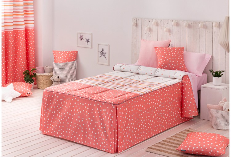 Incluye un cojín lleno de 40x40 cm del mismo estampado que la colcha.