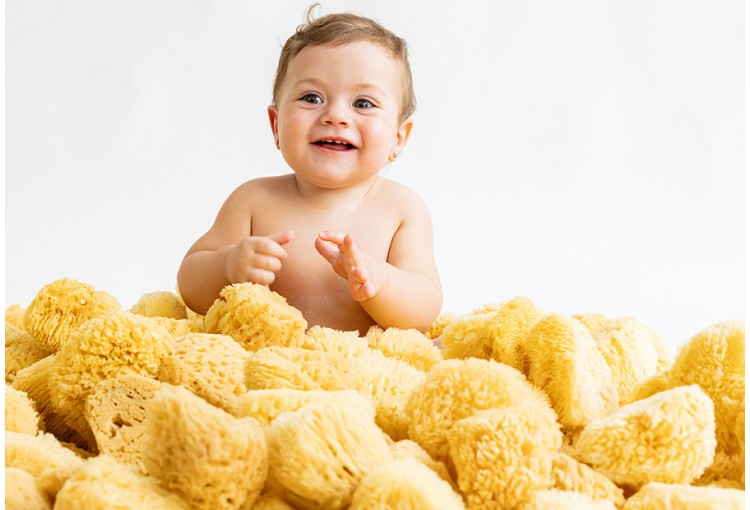 Esponja natural extra suave de la marca SARO. Para la delicada piel de tu bebé en sus primeros baños. Aclarar bien después de cada uso. Fabricado en España. Edad: +0 meses. Hipoalergénica y biodegradable. Tratada a mano.