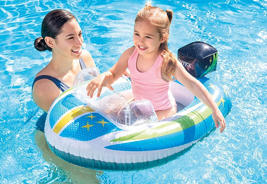 Flotador hinchable infantil Ide la marca Intex. Se vende surtido entre los tres modelos disponibles. Recomendado para niños de 3 a 6 años. Material: Vinilo PVC. Costuras suaves, construcción resistente y colores brillantes hacen de este flotador de piscina una forma divertida de montar olas de verano. Incluye parche de reparación.