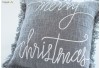 Funda de cojín navideña exclusiva en Tresfan. Tamaño: 45x45 cm. Detalle contorno en flecos. Merry Christmas bordado. Packaging en bolsa de pvc protectora.