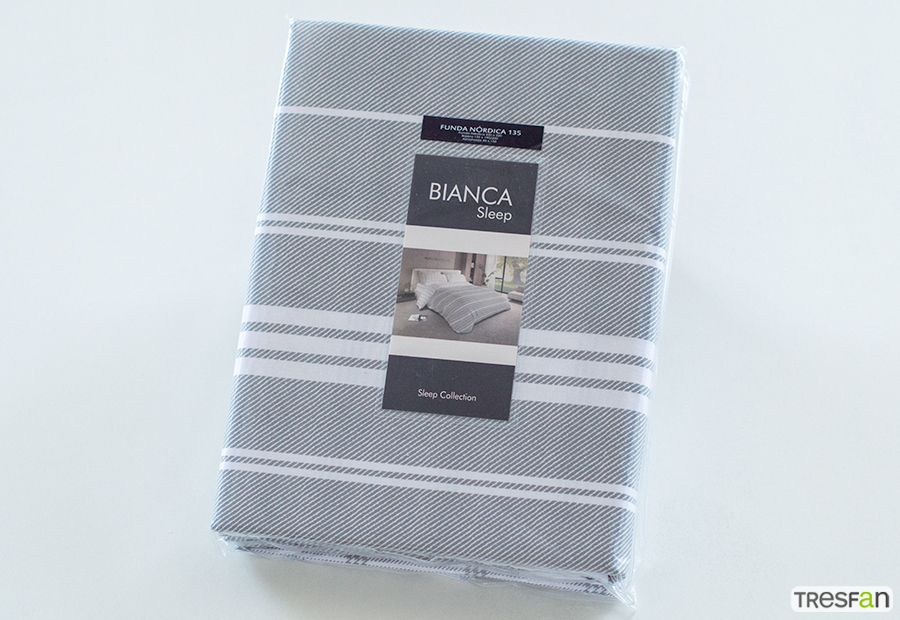 Funda nórdica estampada de la marca Bianca. Tejido de calidad en 144 hilos/m2 y 30/27 pasadas. Composición: 48% Algodón - 52% Poliéster. Packaging en bolsa de pvc con fotolito impreso con fotografia e información. Alto bajera de 30 cm.