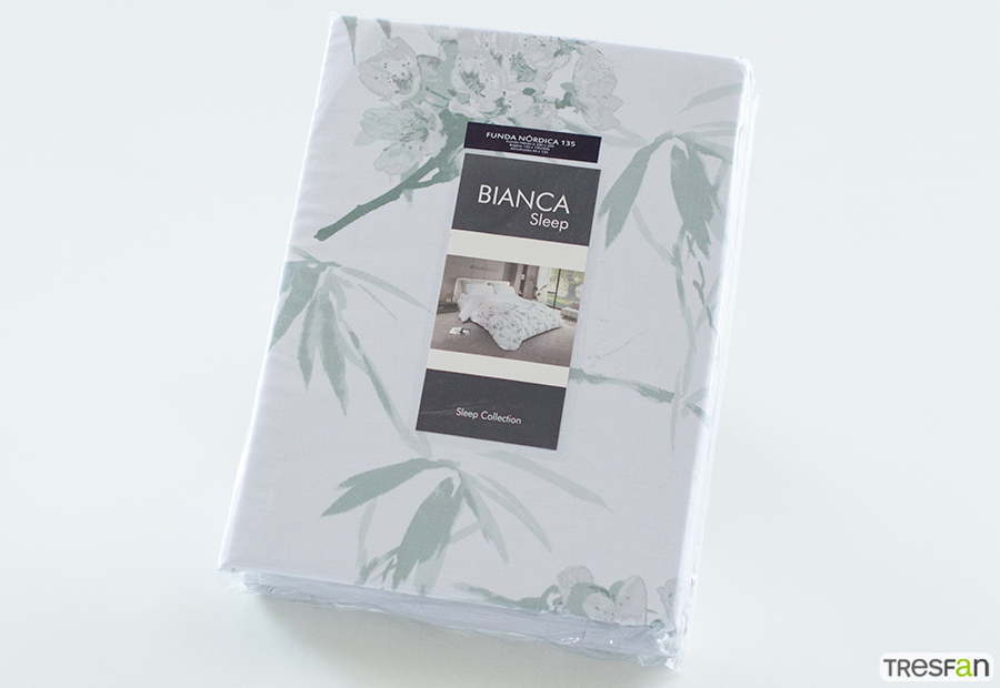 Funda nórdica estampada de la marca Bianca. Tejido de calidad en 144 hilos/m2 y 30/27 pasadas. Composición: 48% Algodón - 52% Poliéster. Packaging en bolsa de pvc con fotolito impreso con fotografia e información. Alto bajera de 30 cm.