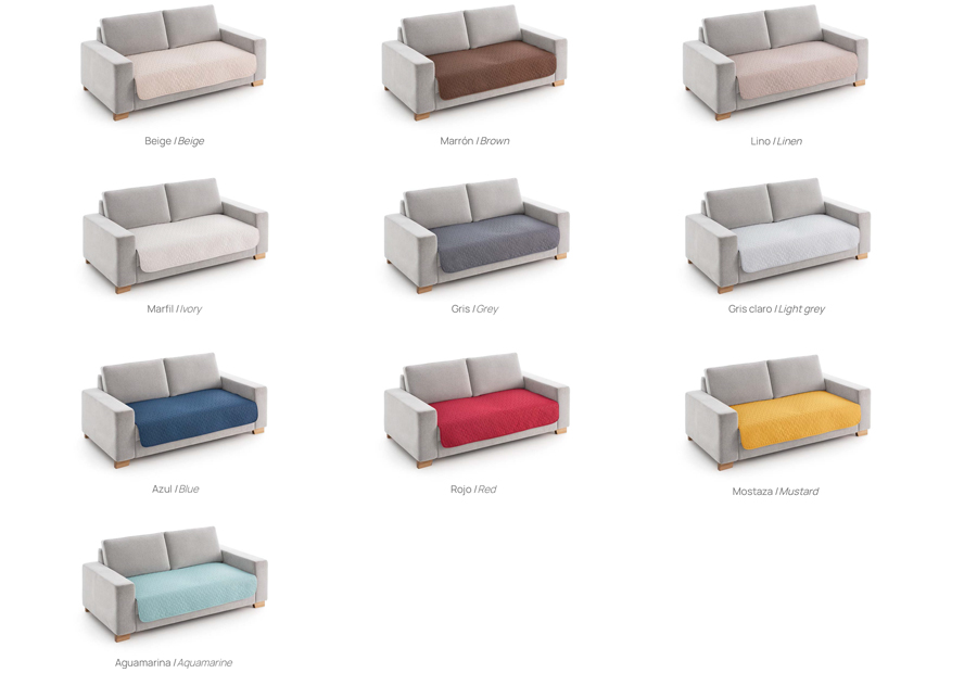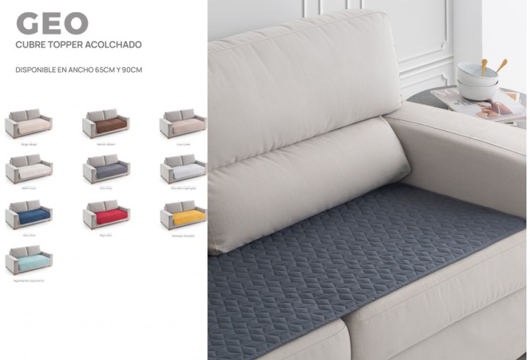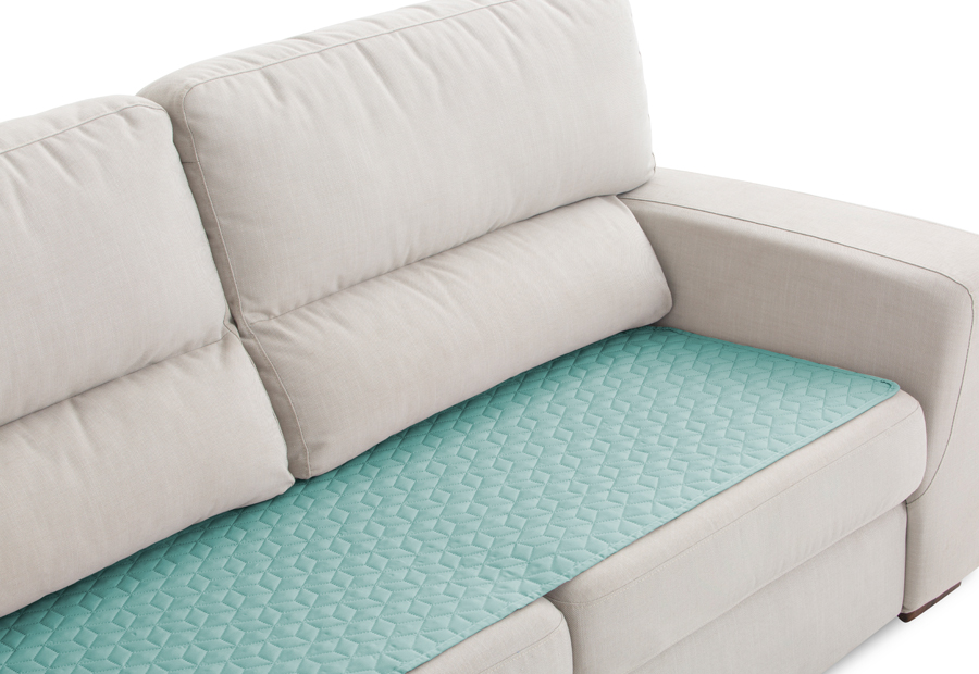 ¡Novedad! Topper cubre acolchado para sofá de Belmarti. Este nuevo diseño cuenta con un tejido que por una parte repele líquidos (tratamiento de la marca Teflón) y por la otra cara un tejido antideslizante. Una buena opción para mascotas. Importante: NO es 100% waterproof.