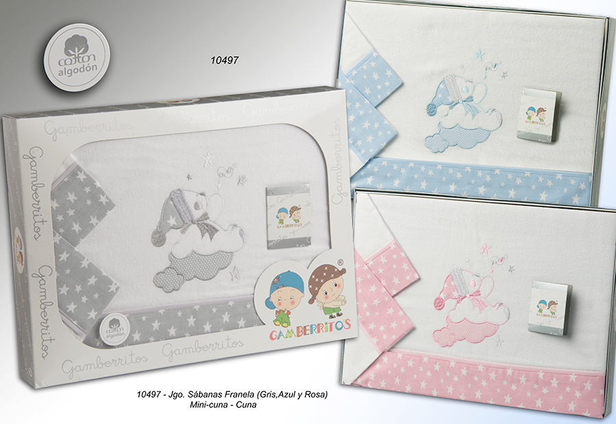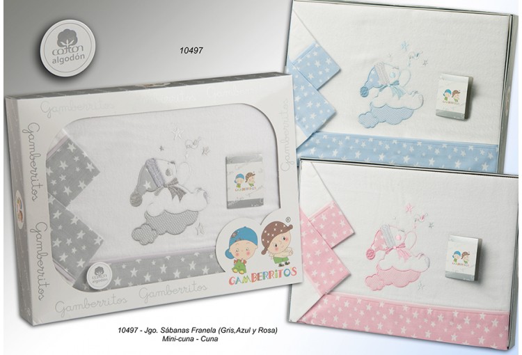 Juego de sábana en tejido cálido de franela y bordado de la marca Gamberritos.
