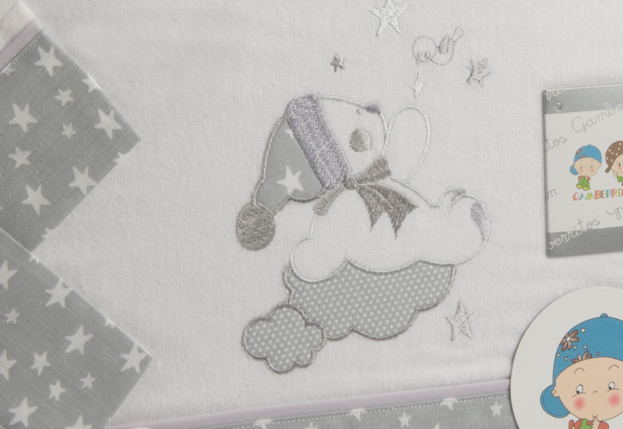 Composición: FRANELA 100% Algodón. Sábana bordada + biés + aplique. MTacto muy suave y agradable.