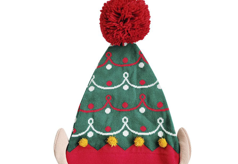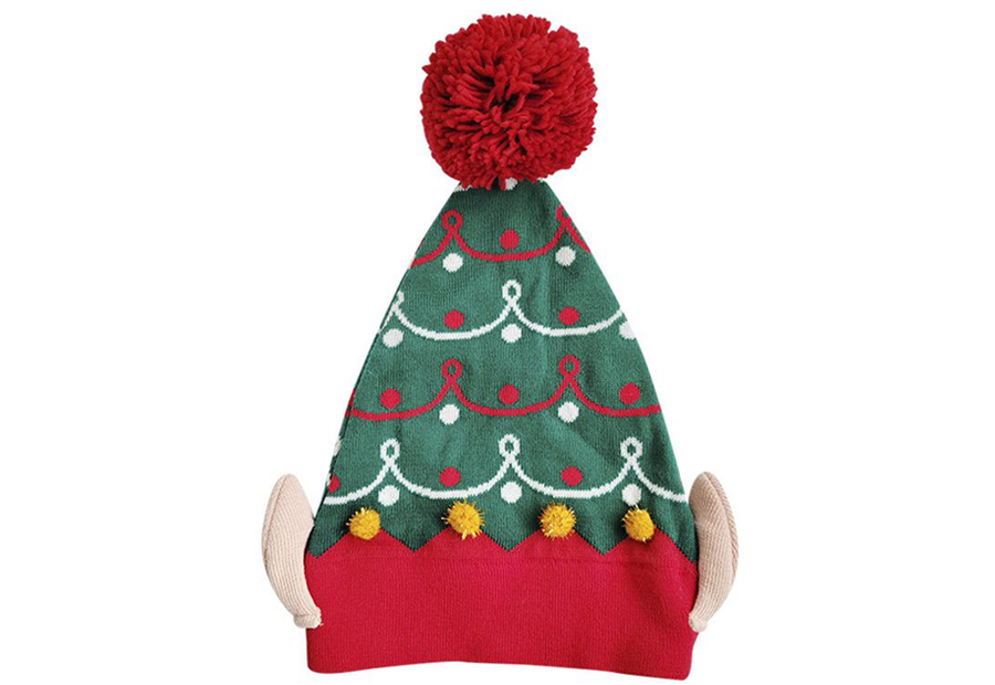Gorro Elfo navideño de algodón con pompon de la marca D'CASA. Talla única. Packaging a granel con etiqueta.