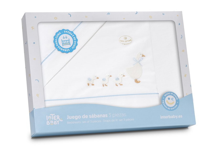 INTERBABY - Sábana Algodón Bordada Patitos Familia 04343 Mini