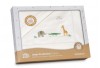 Tamaño Mini Cuna 3 piezas: Bajera: 50x80 cm Encimera: 80x120 cm Almohada: 30x50 cm. Packaging en caja de cartón impresa, ideal para regalar.