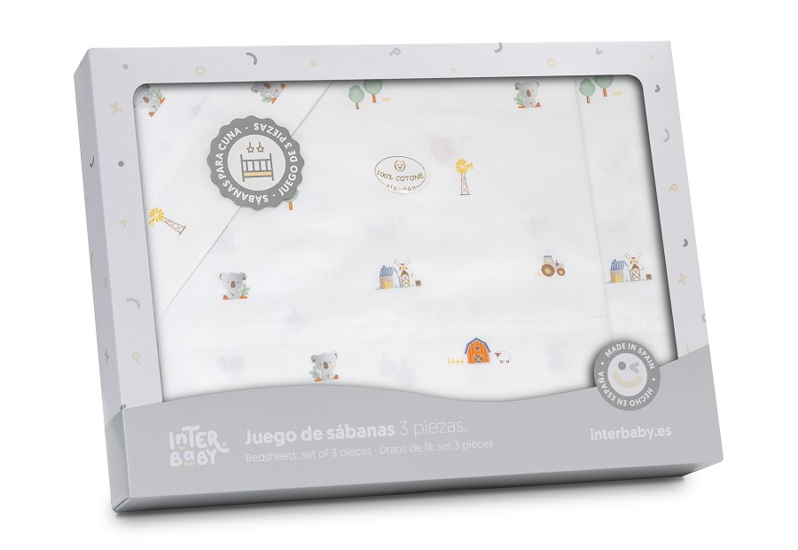 INTERBABY Sábana Algodón Estampada Granja Koala 04348 Mini