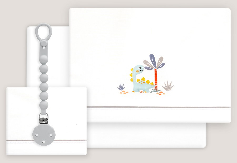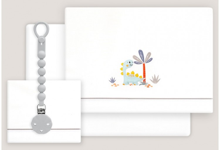 INTERBABY Sábana Algodón+Chupetero Dinosaurio 3332-18 gris Cuna