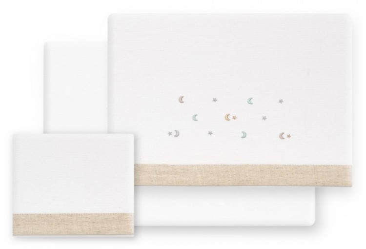 INTERBABY Sábana Franela Alg. Estrella Luna blanco/beige - Cuna