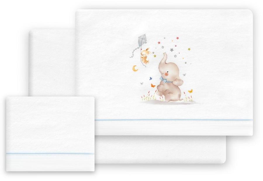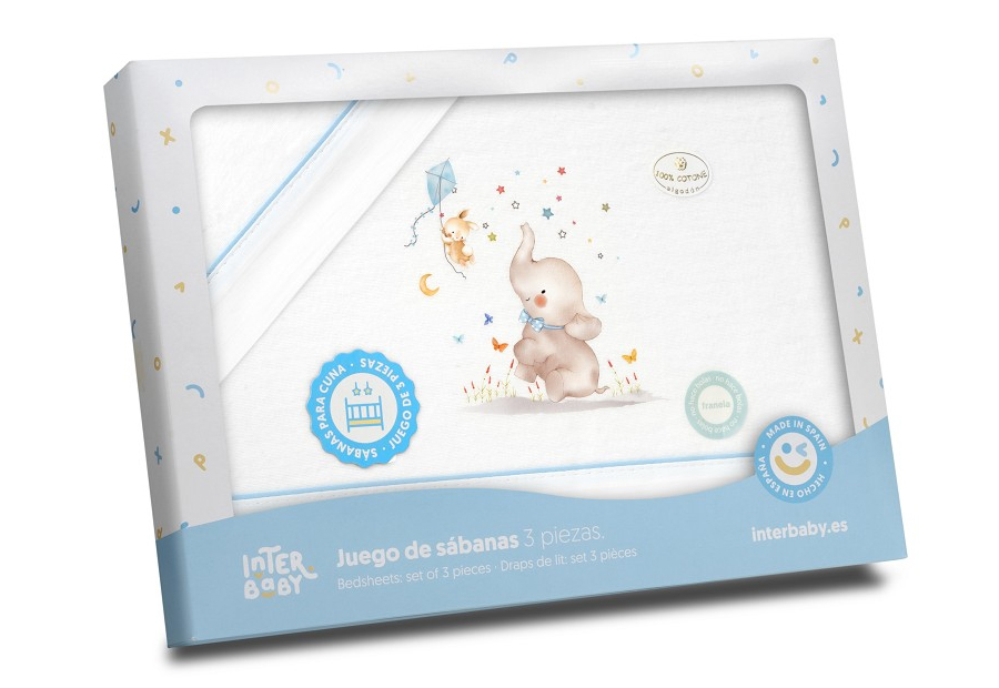 INTERBABY - Sábana Franela Algodón Elefante blanco/azul - Mini