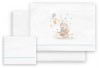 Tamaño Mini Cuna 3 piezas: Bajera: 50x80 cm Encimera: 80x120 cm Almohada: 30x50 cm. Packaging y modelo ideal para regalo.