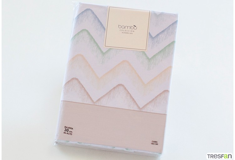 Juego de sábana estampada de la marca Bambù, una colección con la garantía de calidad y diseño de Polo Polo. Sábana recomendada. Bajera especial de 30 cm de alto para cubrir todas las alturas de colchón. Sábana con aplicación. Composición: 100% algodón. Calidad: 30/27 gr/m2.