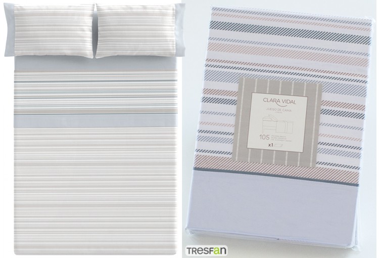 Juego de sábana estampada de la marca Clara Vidal. Diseño y calidad sin igual. Bajera especial de 29 cm de alto para cubrir todas las alturas de colchón. Sábana con aplicación. Composición: 48% algodón - 52% poliéster. Calidad: 30/27 gr/m2. Sábana a juego con la colcha bouti Coimbra amarillo.