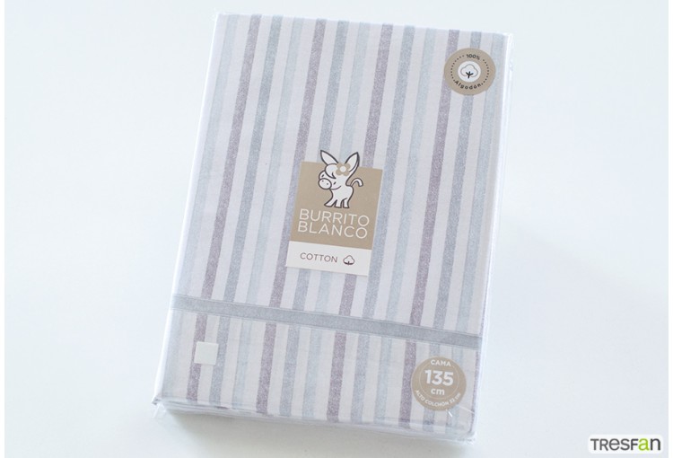Juego de sábana de tela estampada de la colección Algodón de Burrito Blanco. Alta Calidad - Diseño Exclusivo. Toda una vida cuidando sueños.