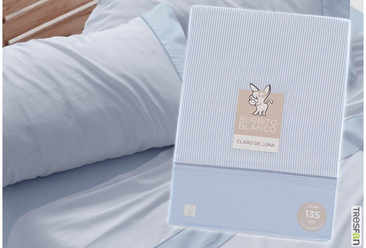Juego de sábana de tela estampada de la colección Claro de Luna de Burrito Blanco. Alta Calidad - Diseño Exclusivo. Toda una vida cuidando sueños.