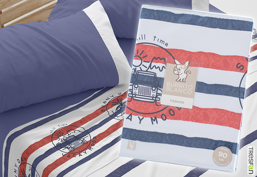 Juego de sábana de tela estampada de la colección Fashion de Burrito Blanco. Alta Calidad - Diseño Exclusivo. Toda una vida cuidando sueños.