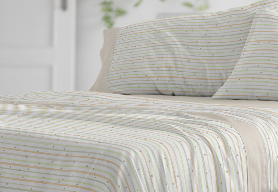 Juego de sábana de tela estampada de la colección Kids de Burrito Blanco. Alta Calidad - Diseño Exclusivo. Toda una vida cuidando sueños.