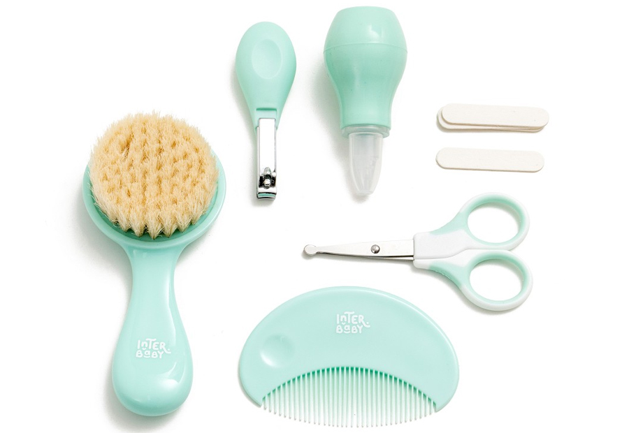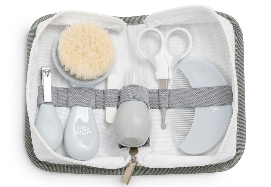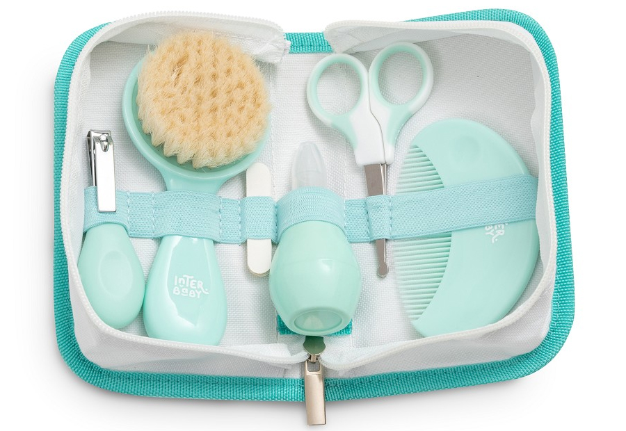 Set neceser completo de cuidado para el bebé de la marca Interbaby. Cuatro colores disponibles: verde, azul, gris y maquillaje. El kit incluye: