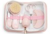 1- Estuche impermeable. 2- Cepillo de cerdas. 3- Limas para uñas recién nacido. 4- Aspirador nasal desmontable. 5- Peine de puntas redondeadas. 6- Tijeras de puntas redondeadas. 7- Cortauñas ergonómico.  Todos los productos incluidos han pasado [leer más]