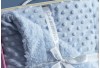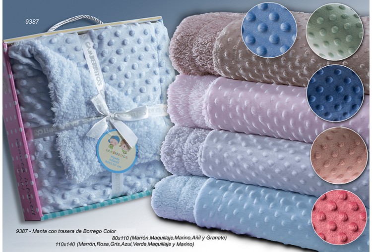Manta Puntitos con Sherpa (borreguito) a tono de la marca Gamberritos. Tamaño: 80x110 cm. Composición: 100% poliéster. Tacto Extra-Suave.